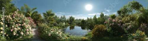 © Ayou.Y, Fototapeta premium Serene garden landscape nature hdr panorama