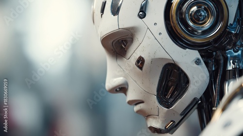 Fototapeta premium Serene Gaze of a Futuristic Android with Metallic and Ceramic Features