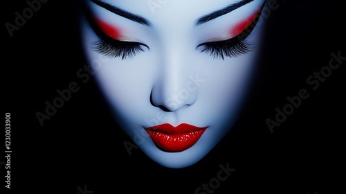 © Mr Muslich, Naklejka premium Serene Geisha: A Close-Up Portrait of Tranquility