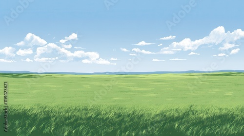 Fototapeta premium Serene Grassland Under a Summer Sky