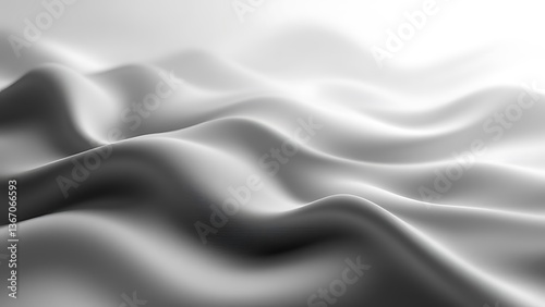 © MstNelufar, Obraz premium Serene grayscale waves of flowing silk, subtly illuminated, creating a calming and elegant visual.