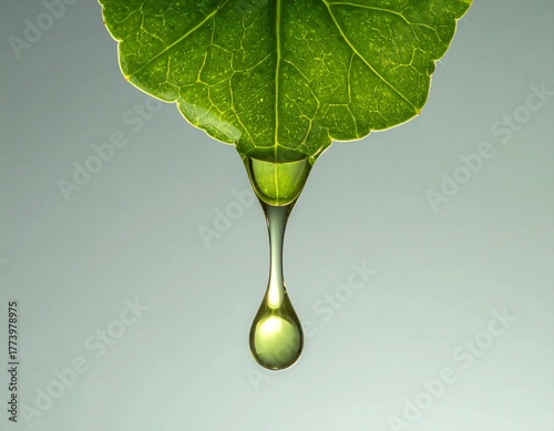 Fototapeta premium Serene Green: A macro view of a droplet of water clinging delicately to the...