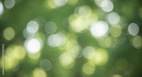 © logitech, Fototapeta premium Serene Green Bokeh: Abstract Nature Background of Soft, Circular Lights