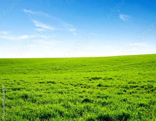 © Nupi Studio, Fototapeta premium Serene Green Field Under a Vivid Blue Sky A Peaceful Landscape