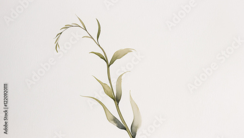 Fototapeta premium Serene Green Herb Watercolor Artwork on White Canvas with Simple and Subtle Detailing