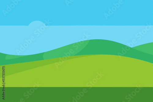 © Vokto, Obraz premium Serene Green Hills Landscape A Peaceful Summer Day Illustration