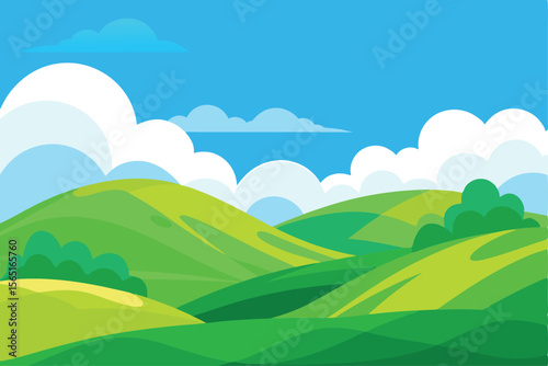 © Creative Shayful GFX, Obraz premium Serene Green Hills Landscape Sunny Day, Rolling Hills, Lush Meadows