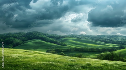 Fototapeta premium Serene Green Hills Under a Dramatic Sky