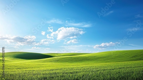 © isend, Fototapeta premium Serene Green Hills Under a Summer Sky
