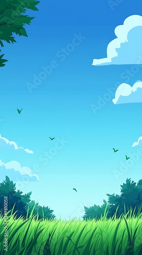 © Fatoniyah, Obraz premium Serene Green Landscape with Soft Clouds and Clear Blue Sky Vector Illustration Graphic Art