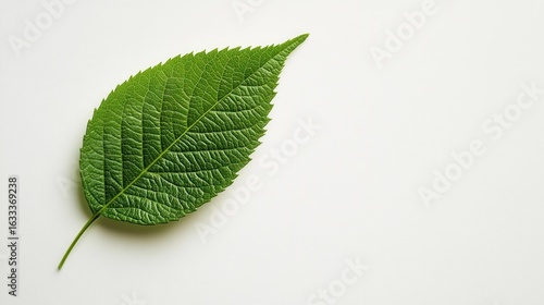 Obraz premium Serene green leaf on plain background in indoor setting