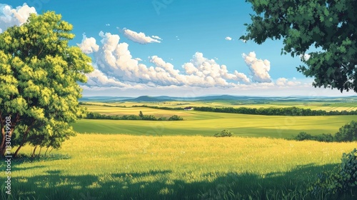 © Nurin, Obraz premium Serene Green Meadow Scene