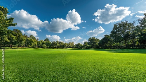 © aulia, Fototapeta premium Serene Green Meadow Under a Blue Sky