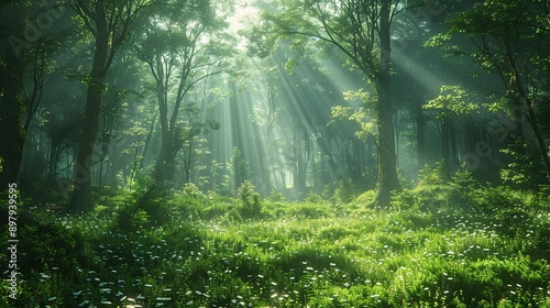 Fototapeta premium Serene Greenery and Sunlight Through the Forest