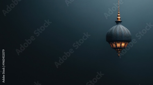 © Mustofa, Obraz premium Serene Hanging Lantern, Illuminated in the Dark