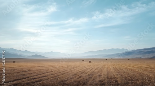 Fototapeta premium Serene Hayfield Landscape Underneath a Calm Sky