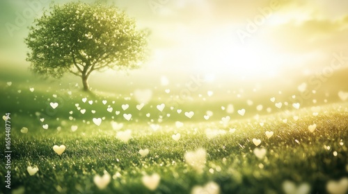 © Chayanin Wongpracha, Obraz premium Serene Heartscape Tree Field Love.
