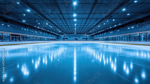 Fototapeta premium Serene Ice Rink Interior with Reflective Surface and Bright Lighting