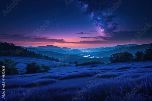 © Michael, Fototapeta premium Serene Indigo Landscape at Nightfall with Striking Hues and Vivid Beauty