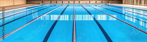 Obraz premium Serene Indoor Swimming Pool with Clear Water and Reflection of Windows Above