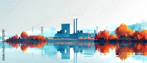 Fototapeta premium Serene Industrial Landscape with Reflections in Water