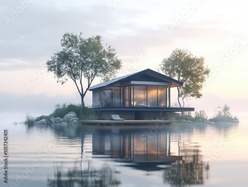 © Alexander Chaykin, Fototapeta premium Serene Island Getaway: Modern Eco-House
