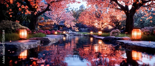 Obraz premium Serene Japanese Garden at Dusk.