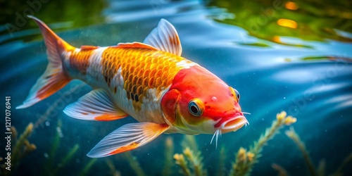 © Man888, Fototapeta premium Serene Koi Portrait: Vibrant Japanese Fish in Pond