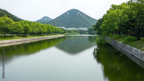 © Munanto, Obraz premium Serene Lake and Mountain View