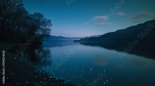 Fototapeta premium Serene Lake at Twilight: A Reflection of Stars and Calm Waters