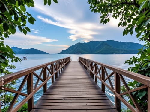 © SR Creative Idea, Obraz premium Serene Lake Pier Mountain View Tranquil Waterscape
