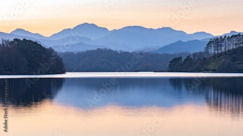 © Penatic Studio, Fototapeta premium Serene Lake Reflecting Majestic Mountains at Sunset