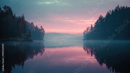 © Vibu design gallery, Obraz premium Serene Lake Reflection at Dusk