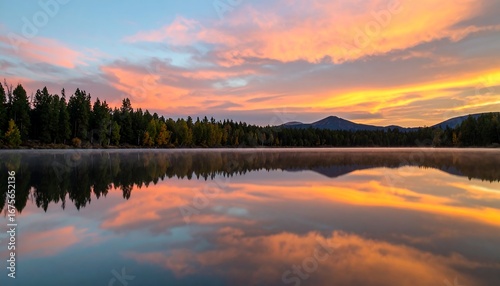 Obraz premium Serene lake sunrise reflection (1)