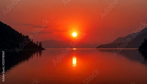 © Mityarko, Obraz premium Serene Lake Sunset Reflection