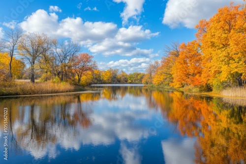 © Diffin, Fototapeta premium Serene lake surrounded by lush greenery and mountains under a clear blue sky, reflecting nature's tranquility.