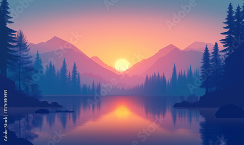 © Ahmad, Fototapeta premium Serene lake surrounded by trees and mountains