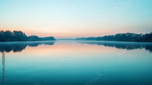 © admin_design, Naklejka premium Serene lake vista, a tranquil oasis embraced by nature's embrace