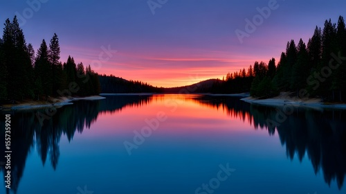 © pkproject, Fototapeta premium Serene lake with stunning sunset reflection