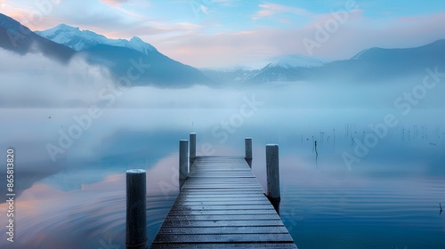© Ubix, Fototapeta premium serene lakeside scene at dawn with mountains