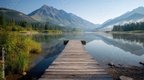 © hen, Fototapeta premium Serene lakeside scene with clear reflections,