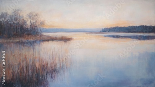 © almeera, Fototapeta premium Serene Lakeside Sunrise Painting