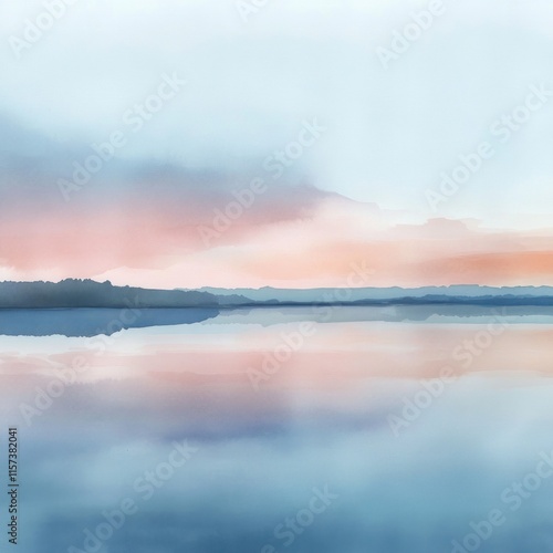 © Nurul, Obraz premium Serene lakeside sunset reflection.