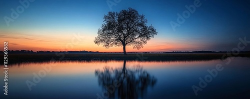 © PM Studeo, Fototapeta premium Serene Landscape at Twilight With a Lone Tree, Generative AI