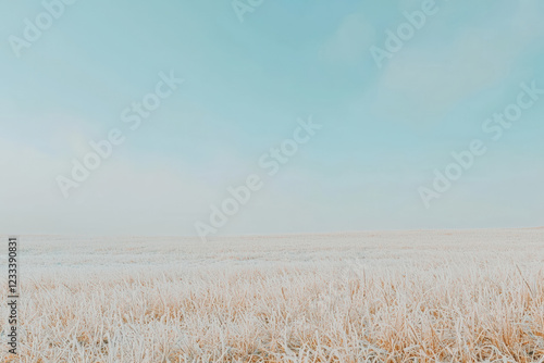 © AIPhoto, Obraz premium serene landscape of frosty tundra with dead grass under clear blue sky