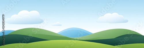 © LyceeChee, Obraz premium Serene Landscape of Rolling Green Hills and Blue Sky