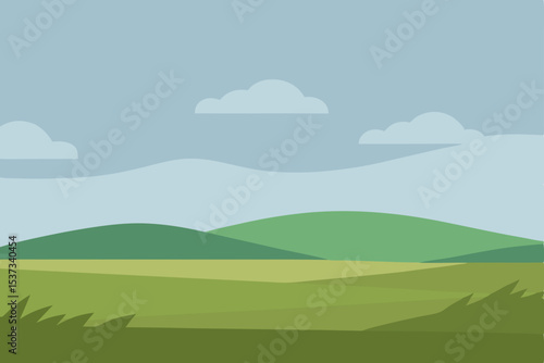 © Sumonto, Fototapeta premium Serene Landscape Rolling Green Hills Under a Calm Sky