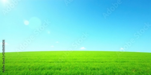© Sumrit, Fototapeta premium Serene Landscape Vibrant Green Field Under a Clear Azure Sky with Gentle Sunlight