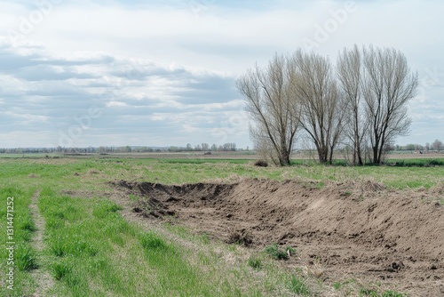 © AHNH2, Fototapeta premium Serene Landscape with Bare Trees and Cloudy Sky in Spring Field