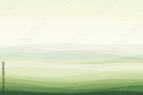 © Adi, Obraz premium Serene landscape with gentle rolling hills in soft green tones under a pale sky, evoking tranquility
